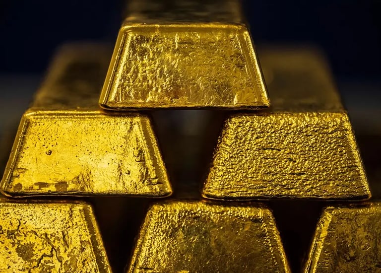 Close-up of pure gold bars stacked neatly in a secure vault.